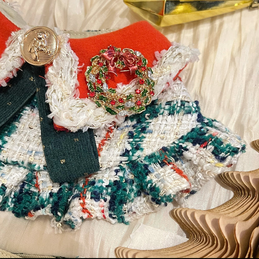 Tweed Green Wilderness Christmas Lady Scarf 粗毛綠野聖誕女裝